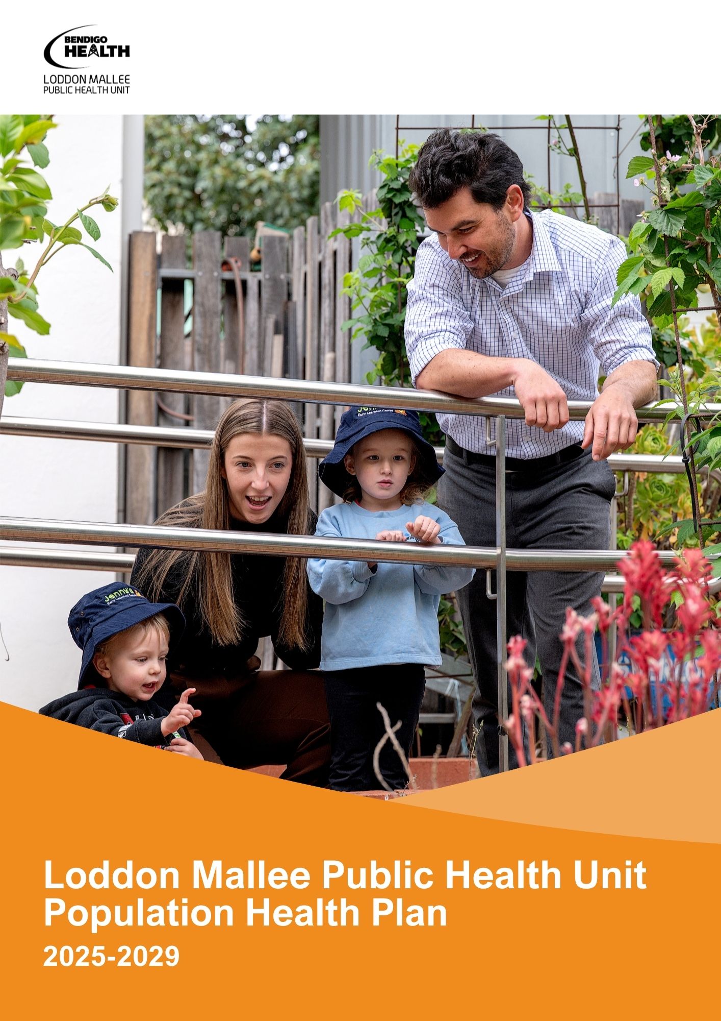 The LMPHU Population Health Plan 2025-2029 aims to support delivery of state-wide public health and wellbeing priorities in the Loddon Mallee region in alignment with associated planning cycles. It reflects and supports implementation of existing Victorian and Municipal Public Health and Wellbeing Plans and provide a basis for action in Loddon, Mallee and Murray sub-regional areas.